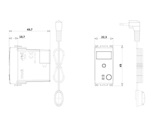 Interfaccia per trasmissione di comandi By-me a ricevitore IR, per domotica By-me, completo di cavetto 3m, grigio