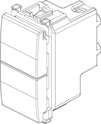 Due pulsanti indipendenti 1P NO + 1P NO 10 A 250 V~, grigio. Consentono la chiusura contemporanea dei due circuiti e quindi non sono adatti all'inversione di marcia di motori (tapparelle, cancelli, etc.)