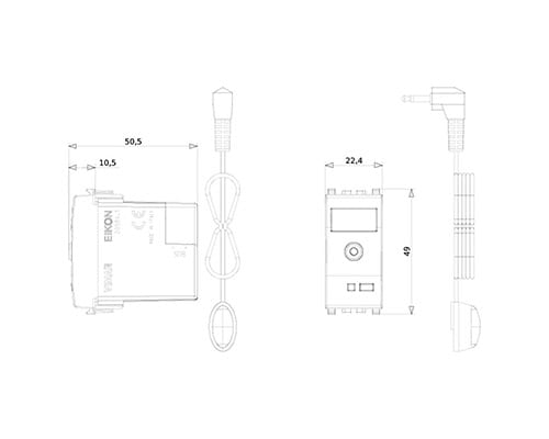 Interfaccia per trasmissione di comandi By-me a ricevitore IR, per domotica By-me, completo di cavetto 3 m, grigio