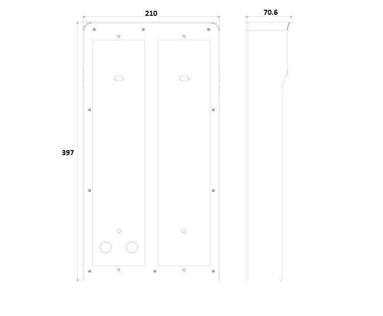 Scatola parete con cornice parapioggia incorporata 6 moduli (2x3) Pixel, grigio. Dimensioni 210x397x70,6 mm