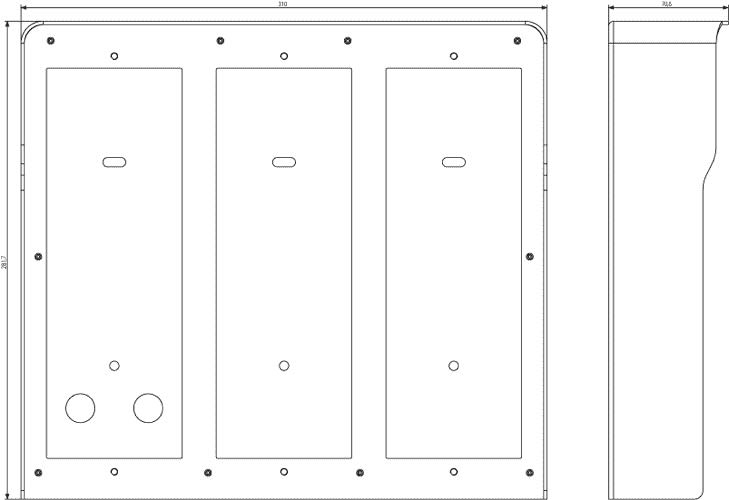 Scatola parete con cornice parapioggia incorporata 6 moduli (3x2) Pixel, grigio. Dimensioni 310x281,7x70,6 mm.