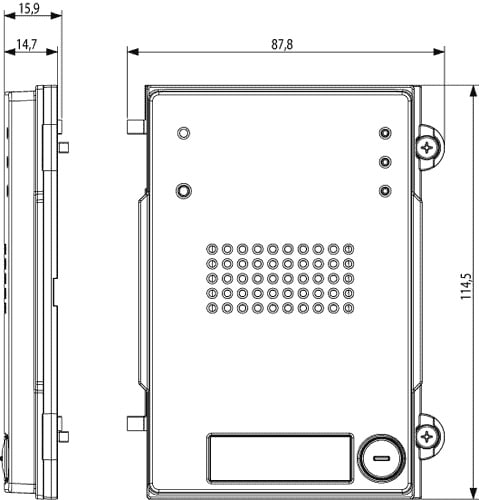 Modulo frontale audio base con 1 pulsante, Pixel Heavy, per unità elettronica audio 41000, grigio sablé. Protezione agli impatti meccanici esterni IK10, grado di protezione IP54.