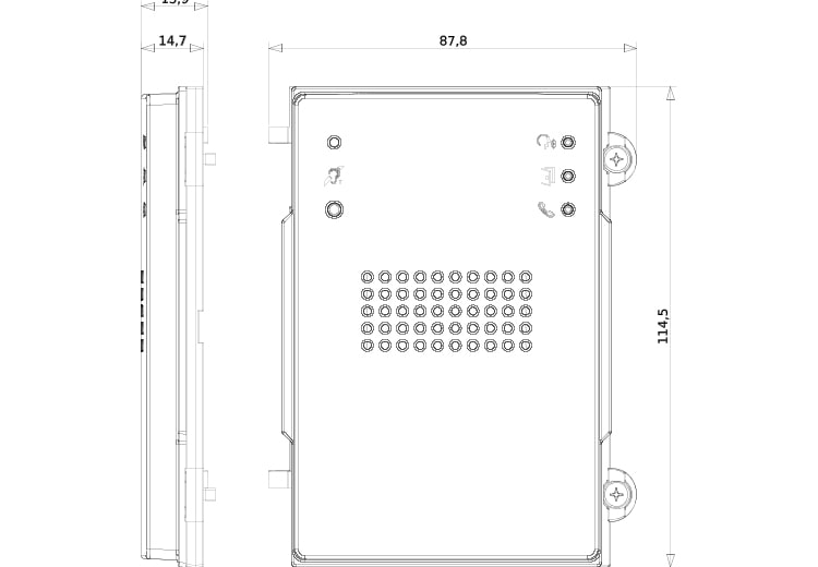 Modulo frontale audio con simbolo teleloop per protesi acustiche, Pixel Heavy, per unità elettronica audio 41001 e audio IN video 41002, grigio sablé. Protezione agli impatti meccanici esterni IK10, grado di protezione IP54