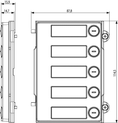 Modulo frontale 5 pulsanti, Pixel heavy, per unità elettronica 41010, grigio sablé. Protezione agli impatti meccanici esterni IK10, grado di protezione IP54.