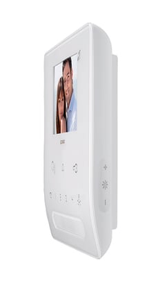 Videocitofono vivavoce Tab Free da parete per sistema Due Fili Plus con display a colori LCD 3,5 in, tastiera capacitiva per funzioni citofoniche e chiamate intercomunicanti, teleloop per protesi acustiche, staffa per il fissaggio su scatola rettangolareo rotonda, bianco