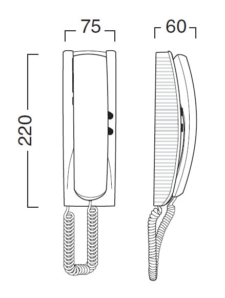 Citofono da parete per sistema Digibus con microcontrollore per codifica/decodifica a 4 o 8 cifre, con 2 pulsanti, funzioni apertura serratura, chiamata portiere ed una funzione ausiliaria, bianco