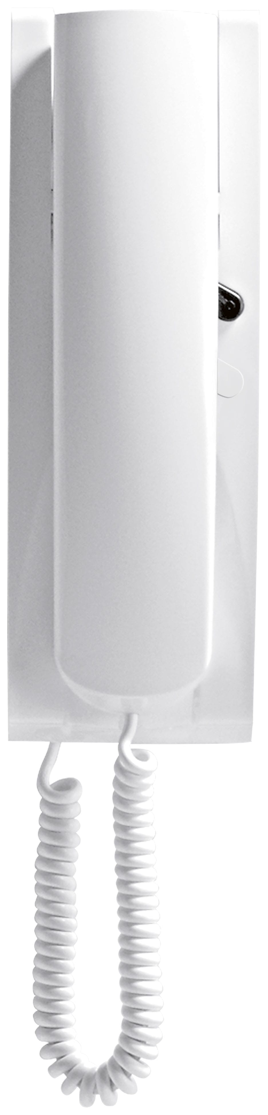 Citofono da parete universale senza segreto di conversazione per sistemi di chiamata in c.a. e Sound System, compatibile con citofoni di altre case costruttrici per sistemi di chiamata in c.a. ed elettronica (non digitale), bianco