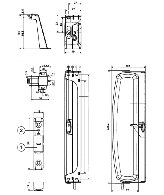 Attuatore a doppia catena articolata 230 V~ per motorizzazione finestre, carico massimo 300 N, corsa selezionabile 200 o 380 mm, completo di supporto ed accessori per apertura a vasistas, a sporgere e cupole, grigio
