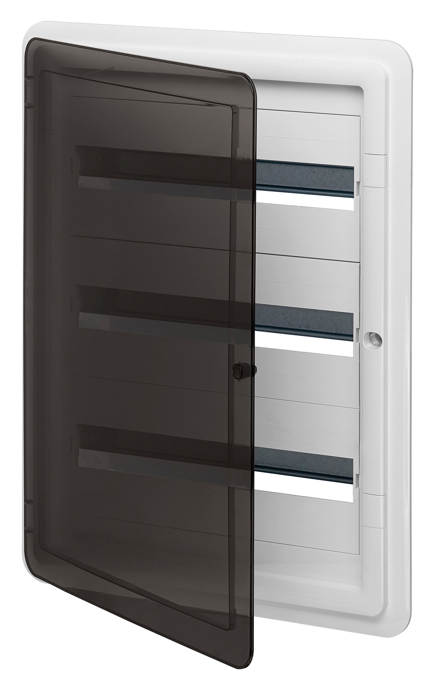 Centralino estetico da incasso IP40, 54 moduli, completo di guida DIN (60715 TH35), portello colore fumé