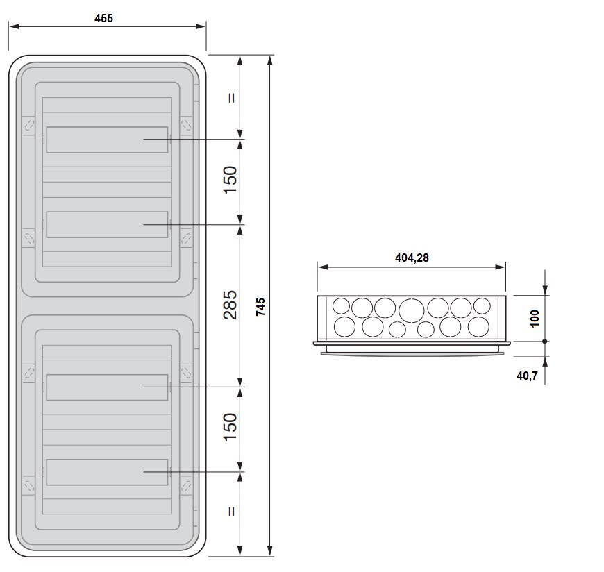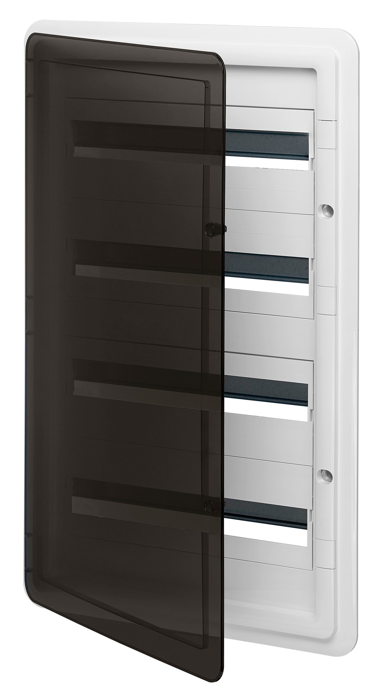 Centralino estetico da incasso IP40, 72 moduli, completo di guida DIN (60715 TH35), portello colore fumé