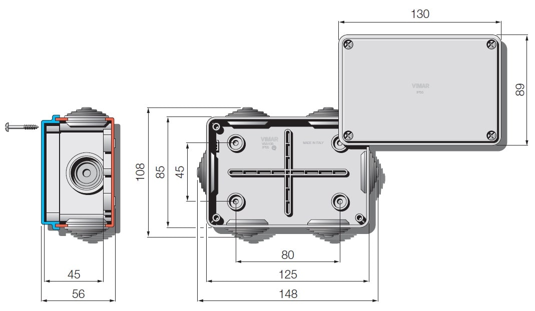 VIMAR SPA - VIWV55105 SCATOLA DERIVAZIONE IP55 120X80X50MM