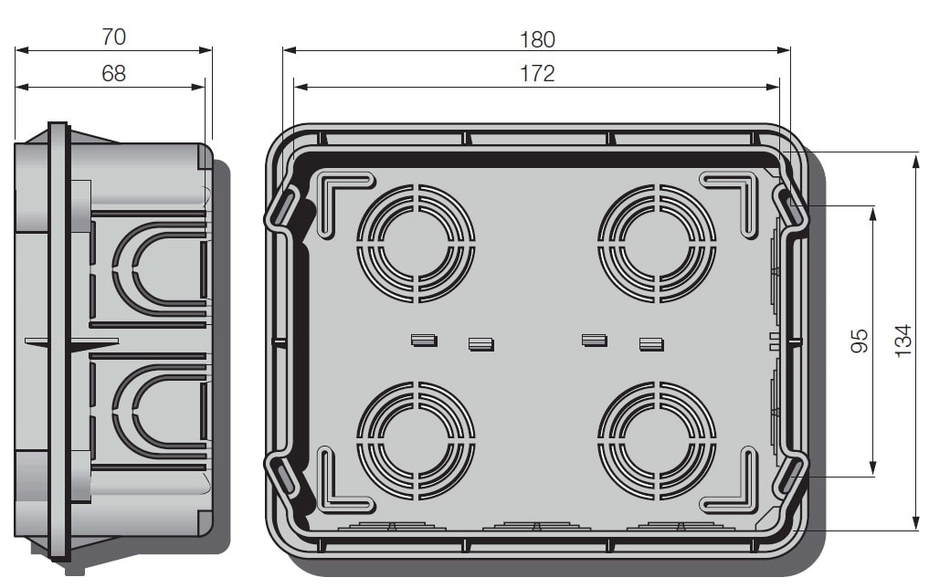 Scatola da incasso rettangolare 12/14 moduli (GW 650 °C), per pareti in muratura, azzurro