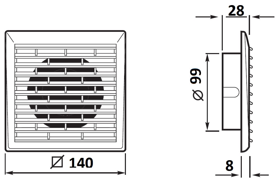 GRIGLIA FISSA - Da montare all’inizio o alla fine del condotto di ventilazione. - Fabbricata interamente in resina termoplastica antiurto resistente agli UV.