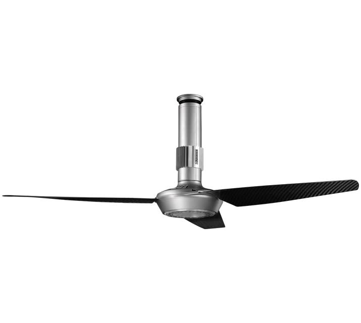 Ventilatore da soffitto reversibile serie Nordik Air Design. Design moderno e distintivo, impreziosito dalle finitura delle pale, in carbonio lucidato e verniciato trasparente, ovvero in legno naturale, che rende i nuovi Nordik Air Design particolarmenteadatti all’inserimento in ambienti, domestici o commerciali, caratterizzati da arredamenti di stile vario, ma comunque ricercato. Coppa, coperchio motore e involucro esterno dell’asta di sostegno stampati in resina termoplastica (policarbonato – PC) trasparente. La geometria delle 3 pale dono in fibra di carbonio e sagomate a profilo alare, per garantire elevati livelli prestazionali (fino a 15.500 m³/h per i modelli 160-27) abbinati ad emissioni sonore contenute. Motore a rotore esterno con albero montato su cuscinetti a sfere. Moderno sistema di illuminazione a LED (temperatura di colore 3.500 °K), che offre 3 modalità di illuminazione alternative. In tutte e 3 le modalità, l’intensità della sorgente luminosa può essere regolata per conseguire il grado di illuminazione richiesto. Funzione reversibilità: è possibile invertire la direzione del flusso d’aria dal pavimento al soffitto, si viene così a creare un flusso non più diretto, ma avvolgente e più ampio. Inoltre si migliora la destratificazione delcalore in inverno, riducendo la differenza di temperatura tra il pavimento (più freddo) e il soffitto (più caldo). In dotazione cavo di sicurezza per prevenire i rischi di caduta del prodotto imputabili ad errata installazione. Forniti con asta di sostegno in acciaio elettro-zincato. Isolamento: Cl. I