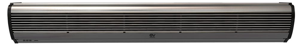 Barriere d’aria per installazione orizzontale fissa in corrispondenza delle porte e, più in generale, delle zone di accesso di locali pubblici, negozi, supermercati o centri commerciali, generano una lama d’aria che ostacola l’ingresso di aria esterna a temperatura diversa da quella desiderata. Particolarmente indicate anche per prevenire l’ingresso di fumo, smog o insetti ed evitare la diffusione di odori tra ambienti contigui. Involucri caratterizzati da pannelli frontali in alluminio spazzolato di colore grigio argento integranti la griglia di aspirazione; pannelli posteriori in lamiera d’acciaio verniciata nera; fianchetti in resina plastica nera. Ventilatori tangenziali, a garanzia di bassi livelli di emissioni sonore, azionati da motori asincroni bialbero a due velocità per il miglior compromesso tra prestazione erogata, temperatura del flusso d’aria generato (nel caso dei modelli con batteria elettrica), e livello di emissione sonora. 2 velocità di funzionamento. I modelli AIR DOOR H hanno batterie elettriche a termoresistori (PTC) caratterizzate da elevate rese termiche e ridotta resistenza aerodinamica, protette contro sovratemperature e picchi di tensione. La specifica logica di funzionamento, che ritarda di 30” l’arresto del ventilatore dopo lo spegnimento della resistenza, contribuisce al loro affidabile funzionamento nel tempo. Alette orientabili, montate in corrispondenza della zona di fuoriuscita dell’aria, permettono di orientare il flusso generato. Consentono risparmio nei consumi perchéevitano la creazione di variazioni termiche e di dispersioni: anche i climatizzatori (in estate) o i riscaldamenti (in inverno) lavorano in modo più efficace, risparmiando a loro volta il proprio consumo. Sono utilizzabili in tutte le stagioni: sono modelli in versione neutra. Grande flessibilità di installazione: la posizione frontale della griglia di aspirazione consente il montaggio anche a ridosso del soffitto nei locali di altezza ridotta (minimo 2.55 m). Facilità e rapidità di installazione, graziealla pratica staffa in dotazione. Possibilità di installazione in serie, per coprire aperture di elevata larghezza. Abbinabili a sensori porta standard presenti sul mercato. Classe di Isolamento: Cl.I .