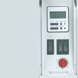 Termoventilatore miniaturizzato da installazione, idoneo per il riscaldamento primario dove un impianto centralizzato sarebbe sovradimensionato o troppo oneroso. • Pannelli frontale e posteriore, griglie superiori ed inferiori in acciaio verniciato con vernice antigraffio grigia • Fianchetti laterali e gruppo comandi in resina plastica autoestinguente V0 di colore grigio • Motoventilatore tangenziale • Resistenza corazzata con dissipatore del calore in alluminio con potenza: 300/600 W • Protettore termico a ripristino manuale • Interruttori luminosi per accensione/spegnimento e per scelta delle potenze elettriche • Termostato ambiente a regolazione manuale con funzione antigelo che garantisce l’accensione automatica del termoventilatore quando la temperatura rilevata dell’ambiente scende al di sotto dei 5°C • Collegabile ad un cronotermostato esterno