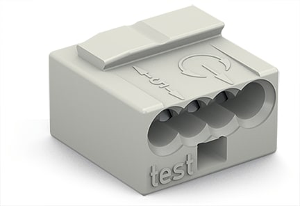 Connettori per scatole di derivazione MICRO PUSH WIRE®; per conduttori rigidi; Ø 0,8 mm; 4 conduttori; scatola grigio chiara; copertura grigio chiara; temperatura operativa ambiente max 60 °C; grigio chiaro