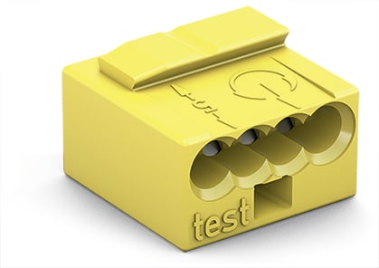 Connettori per scatole di derivazione MICRO PUSH WIRE®; per conduttori rigidi; Ø 0,8 mm; 4 conduttori; copertura grigio chiara; temperatura operativa ambiente max 60 °C; giallo