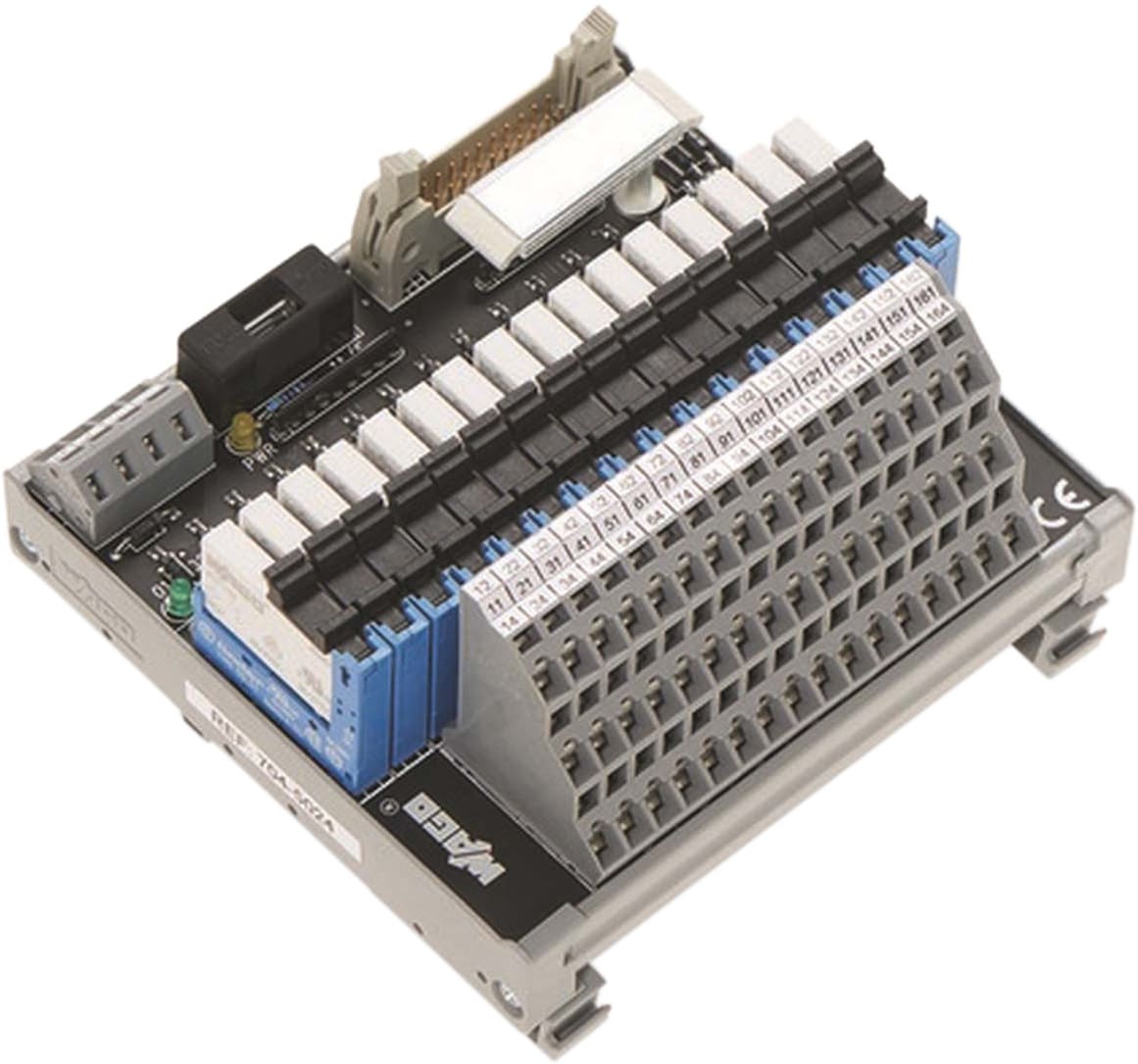 Modulo interfaccia per cablaggio di sistema; Connettore a innesto secondo DIN 41651; Connettore maschio; 20 poli; Uscita relè a 16 canali; 1 contatto in scambio; Morsetti a tre piani per circuiti stampati; nel supporto di montaggio; 2,50 mm²