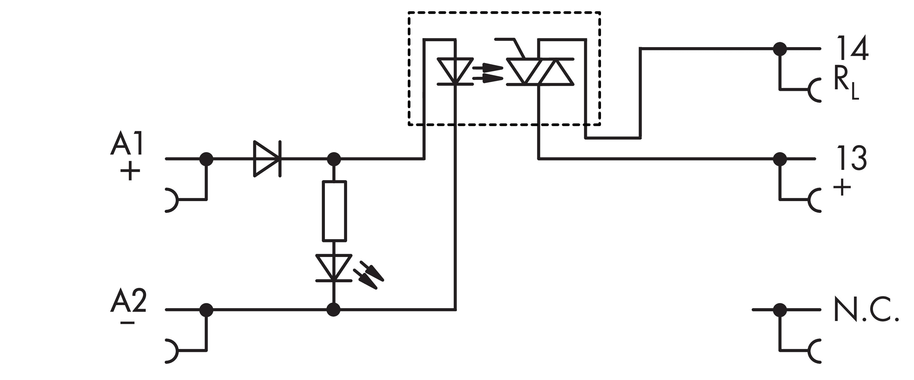 Modulo con relè allo stato solido; Tensione nominale di ingresso: 24 V DC; Intervallo tensione d'uscita: da 24 a 240 V AC; Limite corrente permanente: 2 A; Connessione a 2 cavi; Commutazione passaggio zero; Indicatore di stato giallo; Larghezza modulo: 6mm; grigio