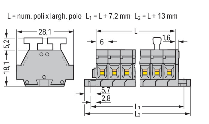 Sezione conduttore collegabile unifilare: