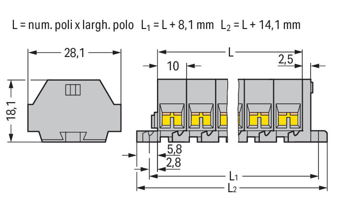 WAGO ITALIA SRL - WAG870-590/281-410 MORSETTO PER COMPONENTE A TRE PIANI, GRI