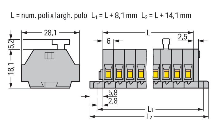 WAGO ITALIA SRL - WAG870-596/281-673 MORSETTO PER COMPONENTE A TRE PIANI, GRI