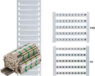 Marcatore per l'etichettatura dei morsetti. I marcatori possono essere etichettati con una stampante o un plotter e il software appropriato.