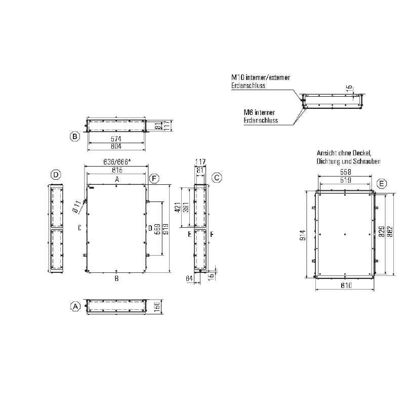 Custodia in metallo adatta all'uso in zone a rischio di esplosione. I fori per il montaggio sono posti all'esterno dell'area di tenuta stagna. Il montaggio a muro può essere realizzato utilizzando fori di montaggio o piedini di montaggio.