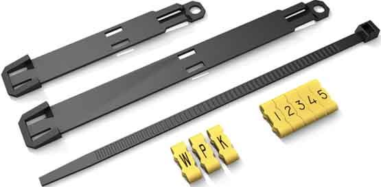 Marcatori privi di alogeni e a ridotto impatto ambientale per linee e cavi. Fissaggio con fascette serracavo.