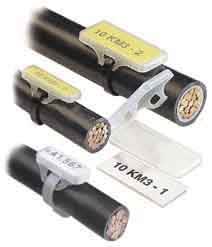 Marcatori privi di alogeni e a ridotto impatto ambientale per linee e cavi. Fissaggio con fascette serracavo.