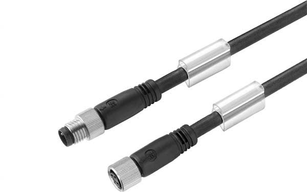 Cavo sensore-attuatore equipaggiato per il collegamento di sensori o attuatori e per la trasmissione di dati. I connettori sono sagomati e testati.