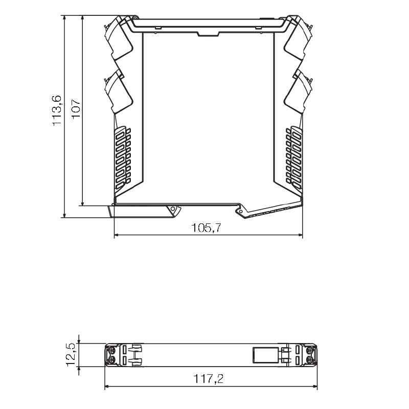 Separazione galvanica tra tensione di alimentazione e tutti gli altri circuiti: