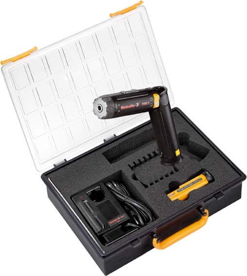 Il cacciavite elettrico con coppia di serraggio è utensile progettato ergonomicamente che permette il funzionamento con una mano sola. Permette di lavorare senza fatica in tutte le posizioni di montaggio. Include inoltre un limitatore di coppia automatico e ha un'elevata accuratezza di ripetizione.