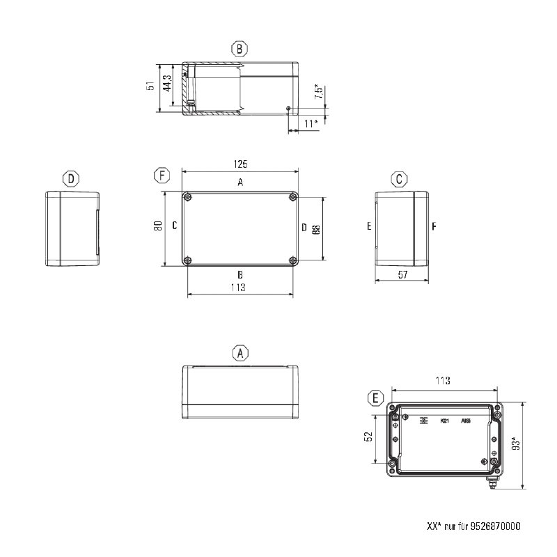 Custodia in metallo adatta all'uso in zone a rischio di esplosione. I fori per il montaggio sono posti all'esterno dell'area di tenuta stagna. Il montaggio a muro può essere realizzato utilizzando fori di montaggio o piedini di montaggio.