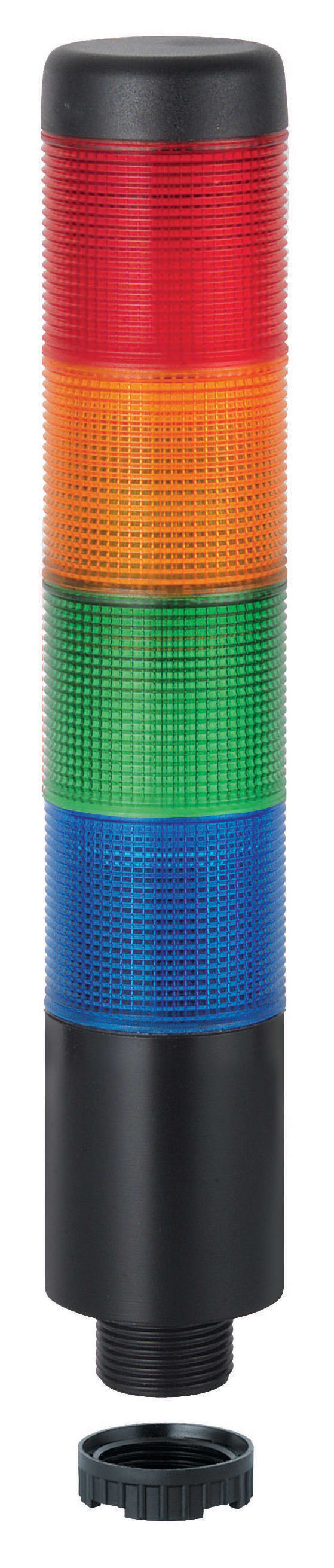 Torre di segnalazione pronta per l'uso con 4 livelli ottici e buzzer (blu/verde/giallo/rosso) Luce continua a LED Con cavo di collegamento Disponibile anche con design metallico e cupola trasparente