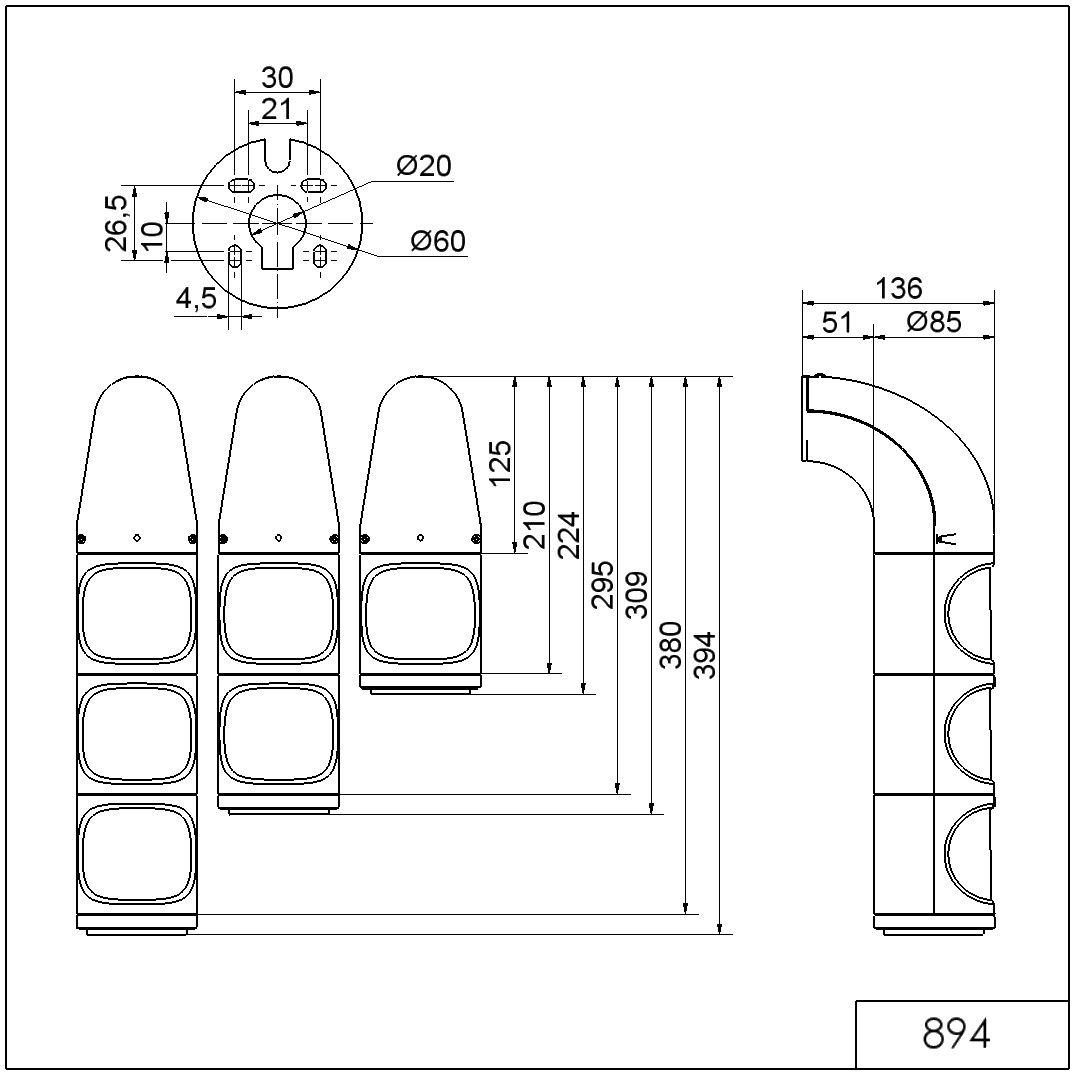 Semaforo a LED ad alta intensità luminosa, con innovativo design premiato. Immagine luminosa a colori intensi grazie ai LED dello stesso colore delle lenti. Il segnale è ben visibile anche lateralmente. Classe di protezione IP 65/IP 69k.