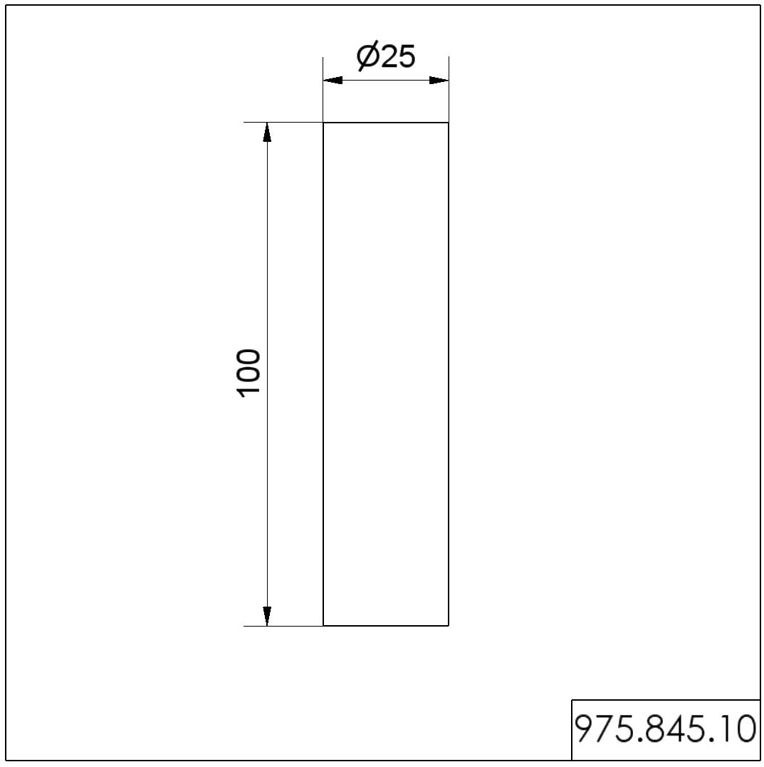 100mm langes Aluminiumrohr mit 25mm Durchmesser.