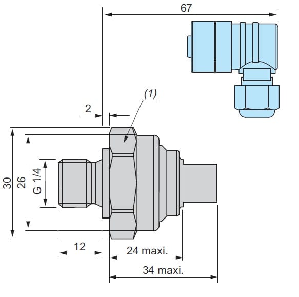 Il sensore elettronico di pressione Schneider Electric OsiSense XMLP ha una pressione nominale di 10 bar, un collegamento elettrico connettore M12 e un collegamento fluido maschio G 1/4 A DIN 3852-e. Ha una tensione di alimentazione da 12 a 24 Vcc e un'uscita analogica da 4 a 20 mA. This product replace XMLP010BD21V. Questo trasmettitore di pressione è progettato per il controllo accurato della pressione dell'aria, dell'acqua dolce, tra 0°C e +135°C, dei fluidi di refrigerazione, degli oli idraulici e diqualsiasi fluido compatibile con l'acciaio inox AISI 304, compresi tra -30°C e +135°C. È fissato direttamente sulla tubazione, ha una durata meccanica di 10 milioni di cicli ed è conforme a EN/IEC 61326-2-3, RCM, CULus, EAC. Ha un corpo in acciaio inossidabile (AISI 316L).