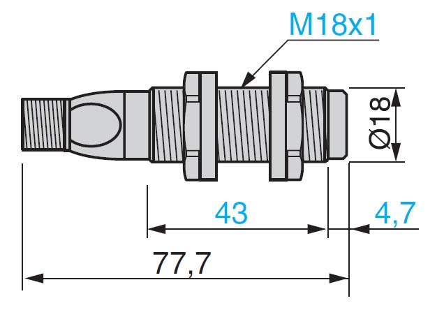 Il sensore a ultrasuoni cilindrico OsiSense (sistema Diffuse) di Telemacanique Sensors ha una scatola VALOX, una distanza di rilevamento di 0,5 m (regolabile tramite la modalità Teach), uscita PNP con funzione NA e un connettore M12. Ha una tensione di alimentazione da 12 a 24 Vcc. Questo sensore a ultrasuoni cilindrico per scopi generici può essere montato direttamente su una superficie o una staffa grazie alla filettatura esterna e ai doppi dadi ed è conforme allo standard IEC 60947-5-2.