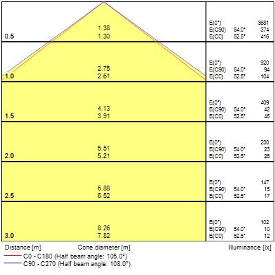 Flusso luminoso calcolato secondo la norma IEC 62722-2-1: