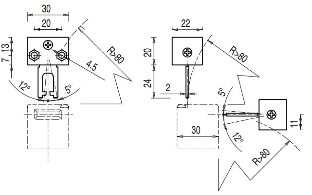 Attuatore per serie FR-FX-FK-FW. Azionatore regolabile in due direzioni in acciaio inox. Azionatore con possibilità di regolazione in due direzioni per sportelli di piccole dimensioni.